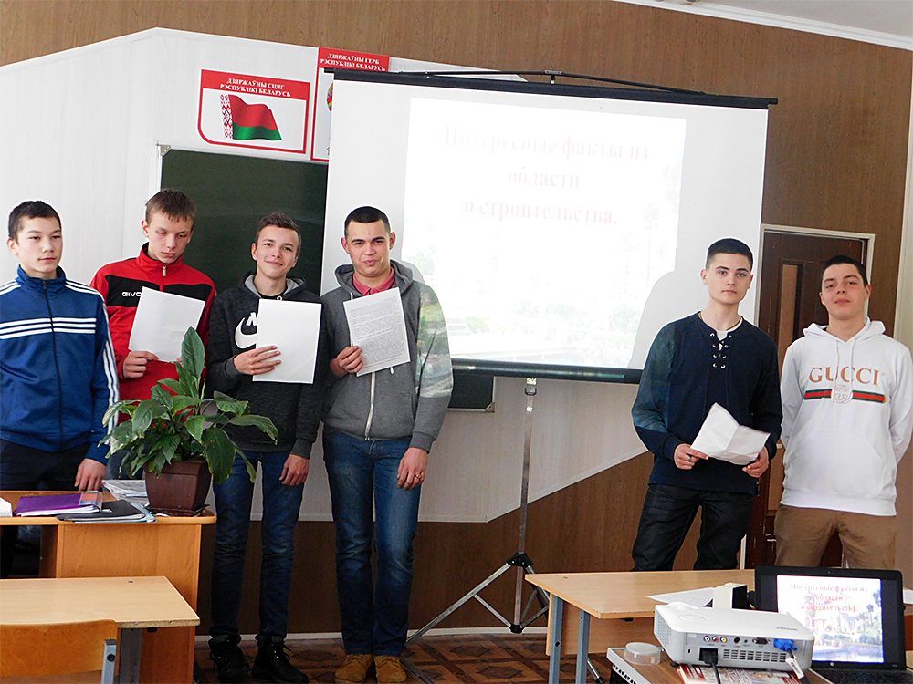 2. Беседа «Интересные факты из области строительства», группа № 10; с сообщениями выступали: Кочин Тимофей, Козич Владимир, Дорошко Максим, Мелюх Максим, Воробей Юрий.