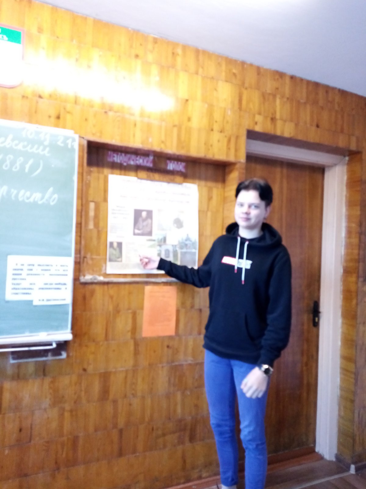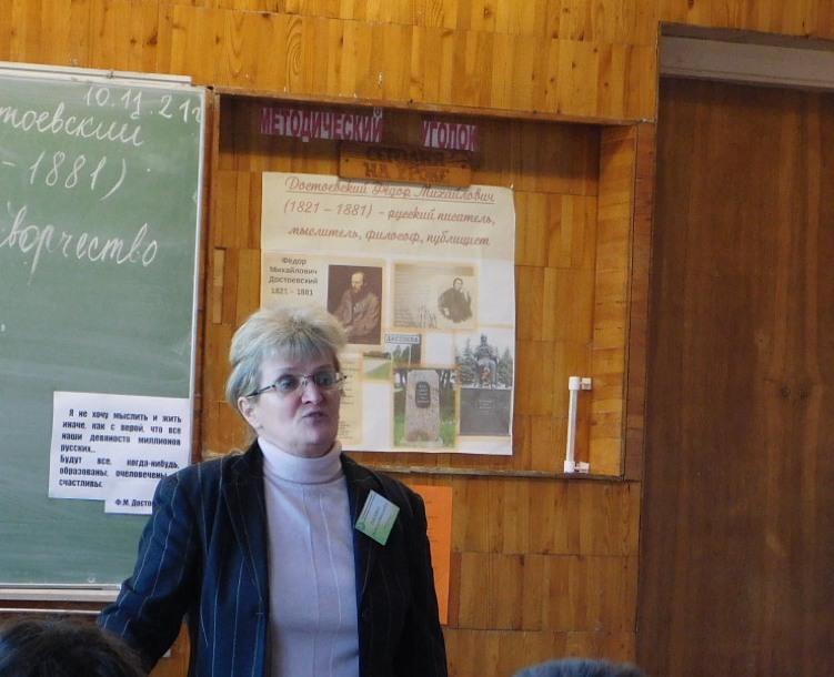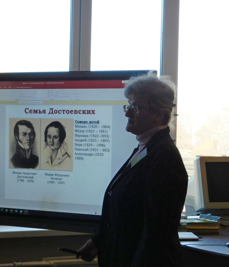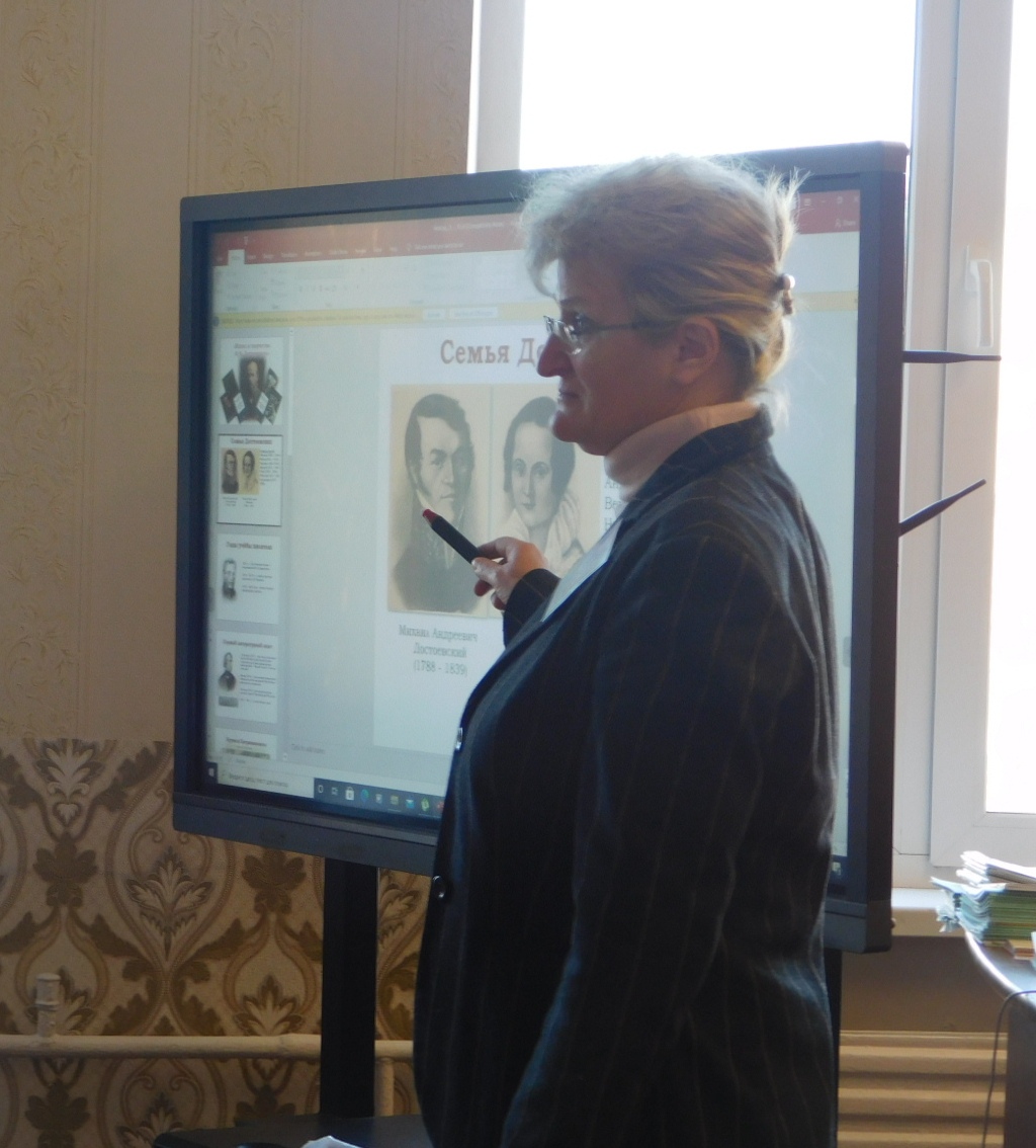 Продолжая неделю русского языка и литературы, сегодня в группе №15 прошёл открытый урок “Жизнь и творчество Достоевского”. Урок проходил в форме устного журнала. Выступили учащиеся, получившие домашнее задание ознакомиться с фактами биографии Ф.М. Достоевского. Олиферчук Александра, выпускница Достоевой школы, провела увлекательную заочную экскурсию по литературному музею д. Достоево. Крифулец Глеб и Иванюк Егор читали стихи, посвященные писателю.