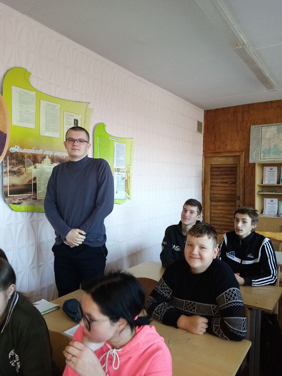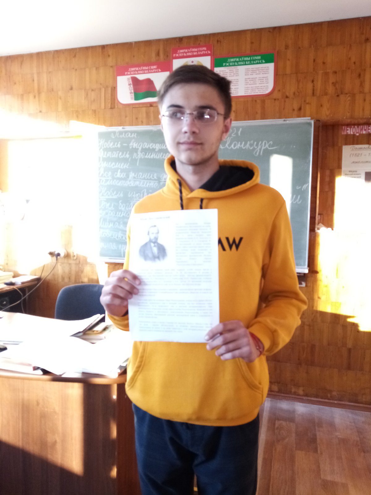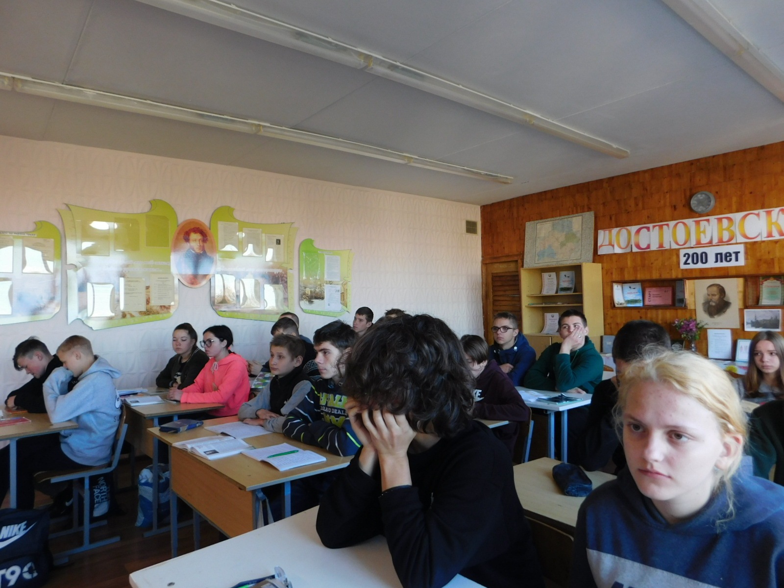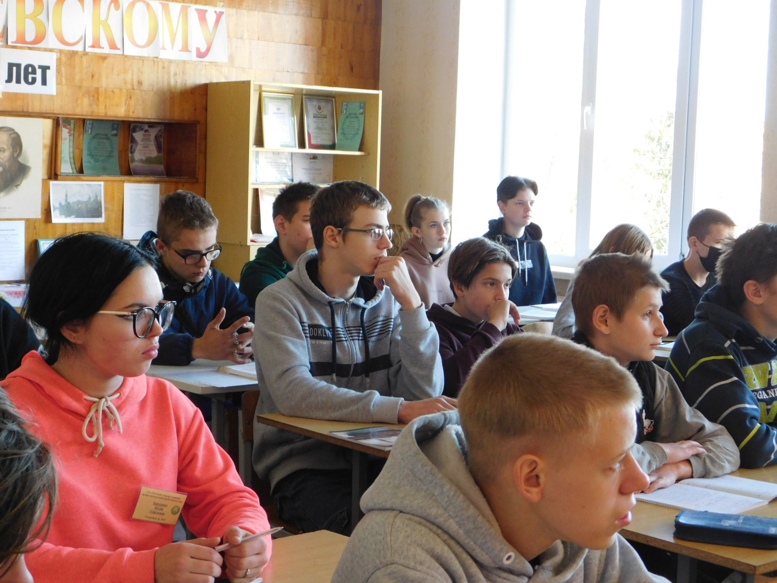 Продолжая неделю русского языка и литературы, сегодня в группе №15 прошёл открытый урок “Жизнь и творчество Достоевского”. Урок проходил в форме устного журнала. Выступили учащиеся, получившие домашнее задание ознакомиться с фактами биографии Ф.М. Достоевского. Олиферчук Александра, выпускница Достоевой школы, провела увлекательную заочную экскурсию по литературному музею д. Достоево. Крифулец Глеб и Иванюк Егор читали стихи, посвященные писателю.
